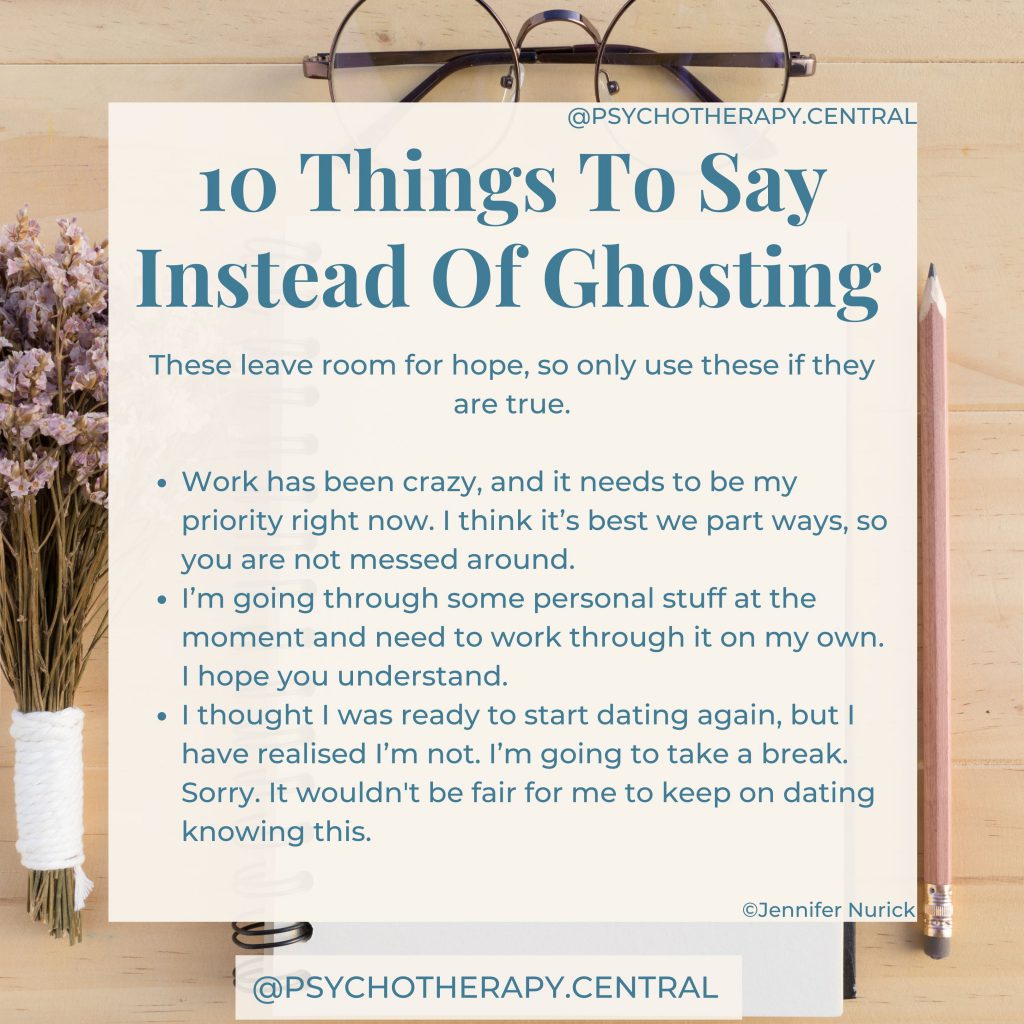 There are a lot of different reasons here. The question is how close you feel you can stay to the truth of the situation whilst imagining how the other person might feel to hear what you have to say. And this is when we bump into that old dilemma of harsh truth versus kindness. If kindness dictates a respectful text or conversation to end the relationship rather than ghosting, reading through the list above might be helpful.
