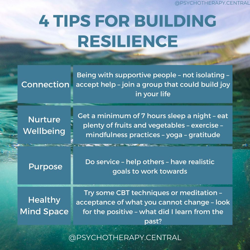 These are some research-based ideas to build resilience. I would add to this list SELF-TRUST. For me, self-trust has helped in times of struggle. The feeling that I trust myself to do what is aligned with my values and to protect myself when I need it.