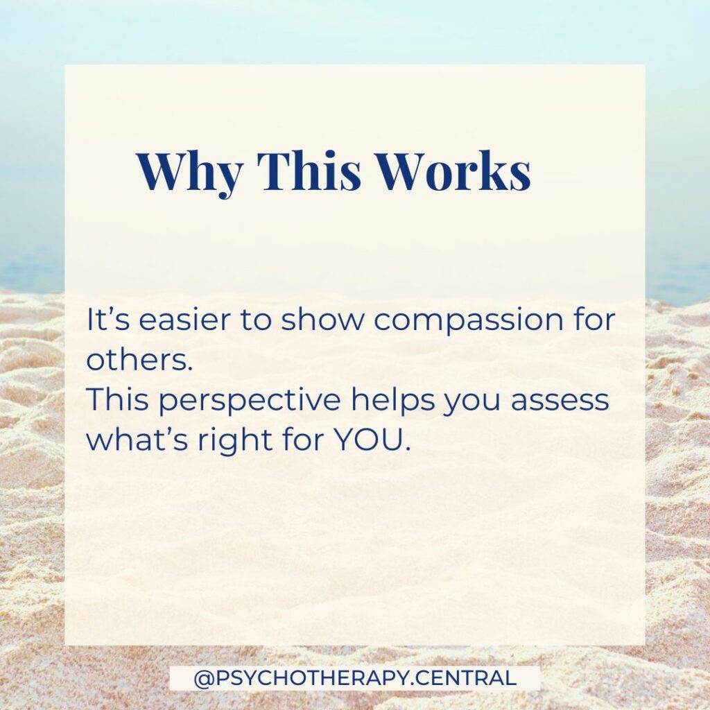 This perspective works because we often show more compassion to others than to ourselves. It’s time to extend that same kindness to you.