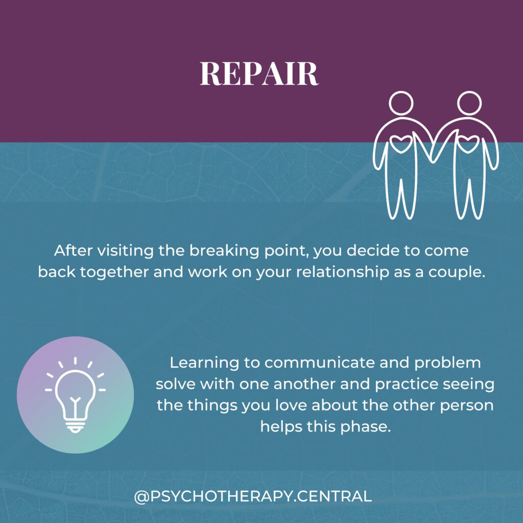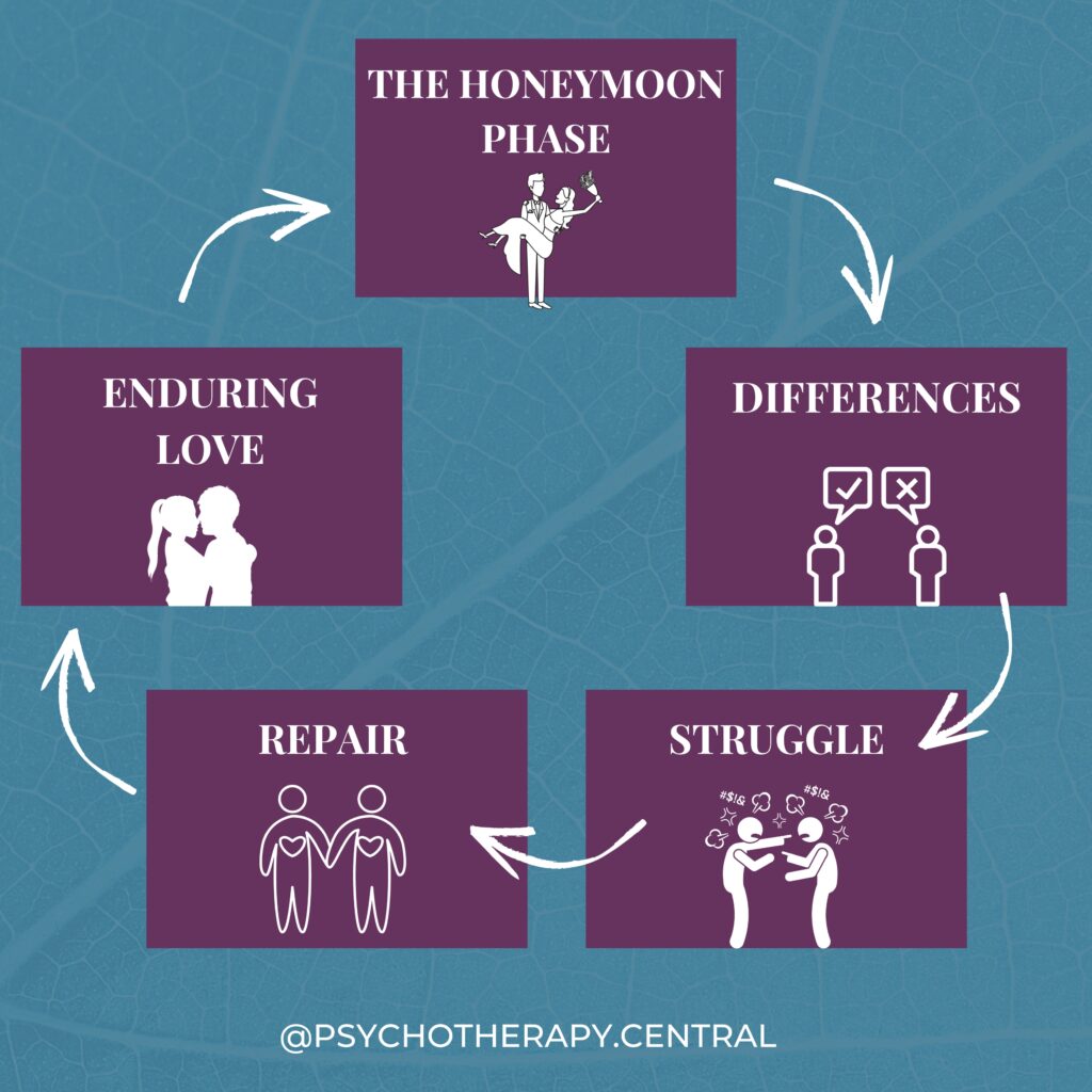 Once a concrete repair has been established, we can move into ‘enduring love,’ a deeper, more real love than in the honeymoon phase because you have gone through some tough things together and come through it. From here, we cycle back into the honeymoon, and it all starts again.