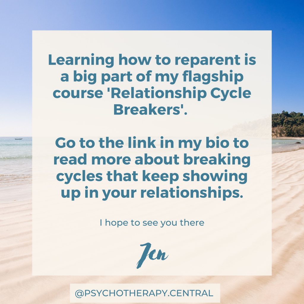 Wherever you are in your #healingjourney, reparenting is part of it. When we have been raised by adults who didn’t know how to regulate their nervous system, who did not have the skills to role model healthy boundaries or conflict resolution, who were maybe disconnected from their body and sense of self due to their own upbringing, we need to learn these skills later in life as adults, to become cycle breakers. Our parents simply couldn’t teach us what they didn’t know.