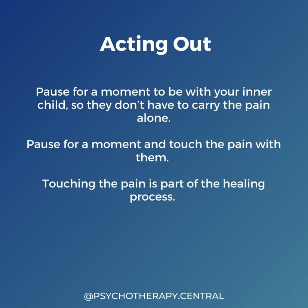 Pause – When you feel yourself about to ‘act out,’ can you pause? Can you hold the tension and discomfort in your body and be curious about what is happening for you?