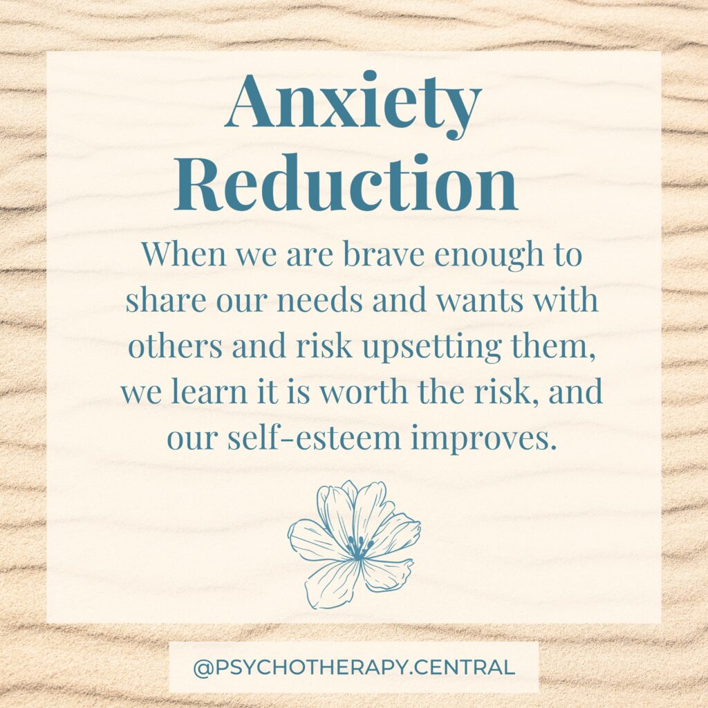When we are assertive, we tend to experience less anxiety and depression because we can stand in our truth while attempting to understand how the other person feels about what is being discussed.