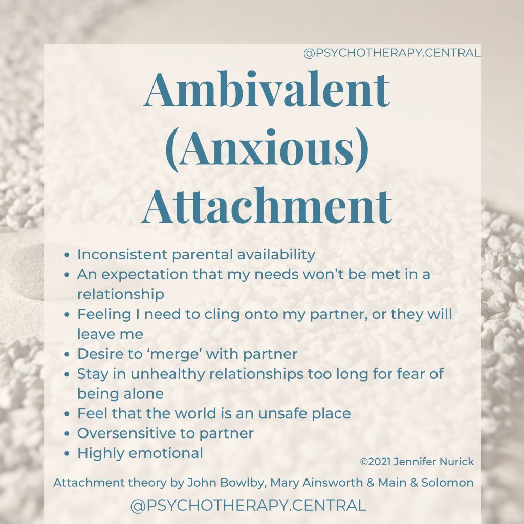 There can be a few reasons for the development of the ambivalent (anxious) attachment style. It can be due to the parent not being consistently available in the way the child needs them to be, or she limits natural infant exploration due to her own fears or compulsions, or it can result from a child’s biological vulnerability.