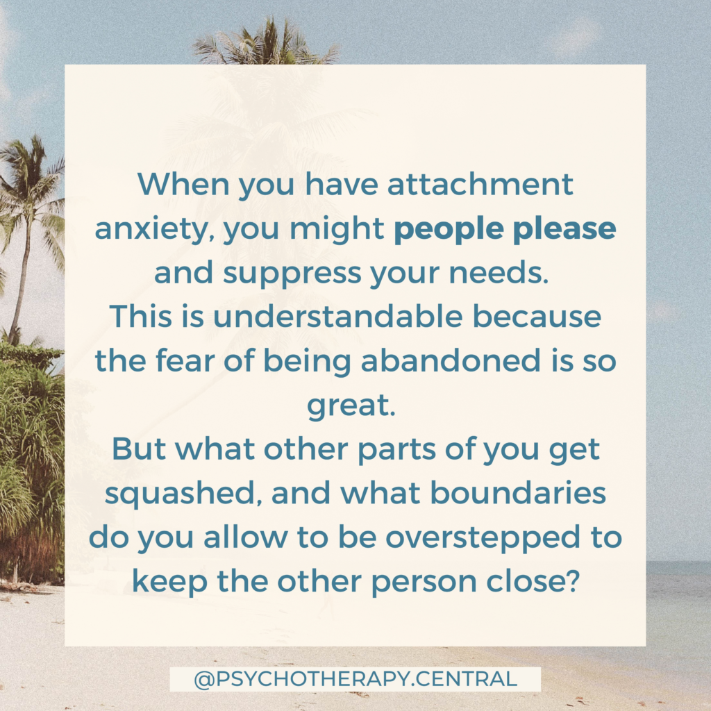 When attachment anxiety takes hold, the instinct to people please and prioritize the needs of others over your own can take over. This behavior is understandable because of the overwhelming fear of being abandoned. However, it’s important to recognize the impact this can have on other aspects of your life.