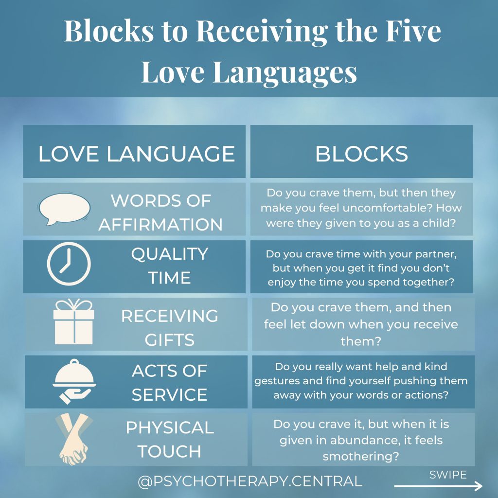 Once we know what our love languages are, it is interesting to think about the extent to which we allow love in. For example, we might crave words of affirmation, but when they are given part of us pushes them away or cringles a little bit, or maybe thinks they are not authentic.