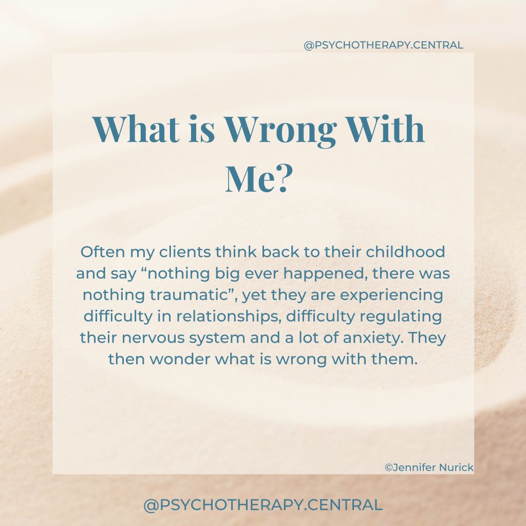 Often my clients think back to their childhood and say “nothing big ever happened, there was nothing traumatic”, yet they are experiencing difficulty in relationships, difficulty regulating their nervous system and a lot of anxiety. They then wonder what is wrong with them.