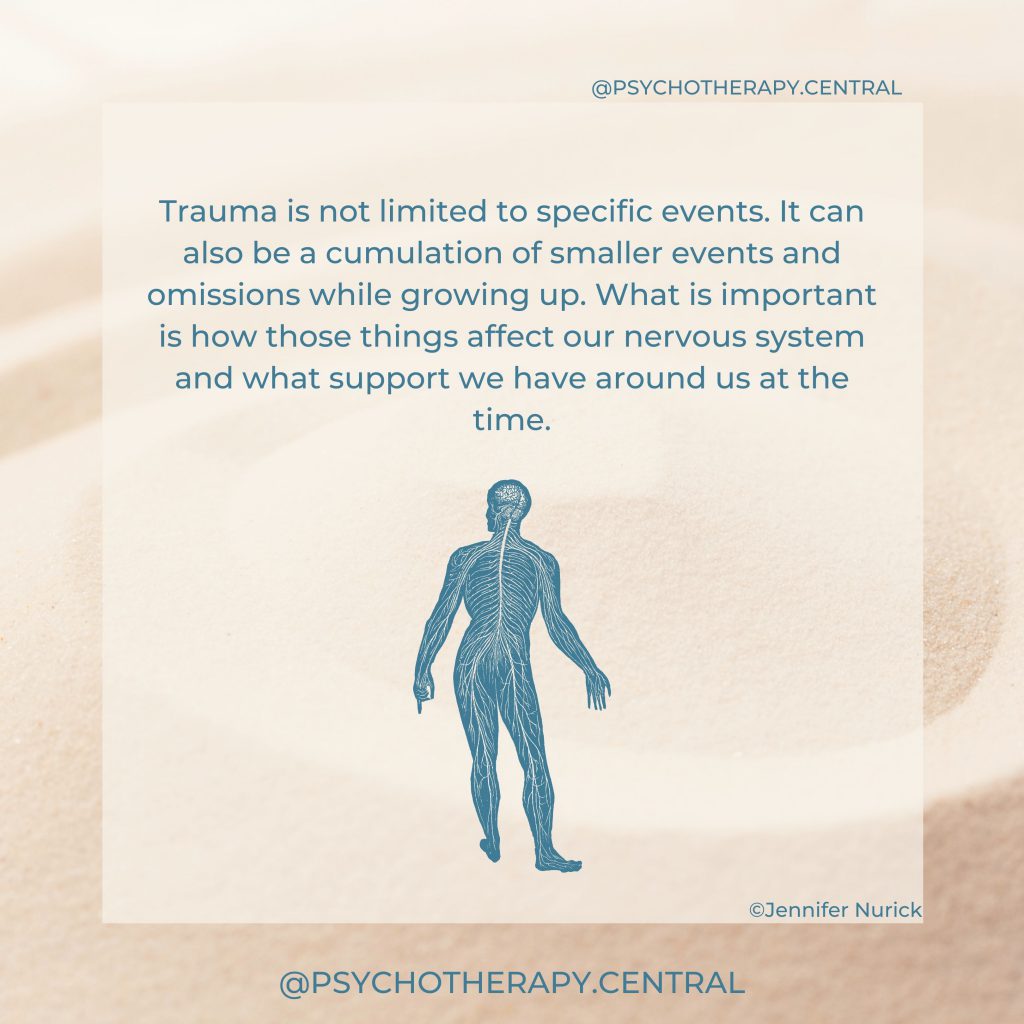 Trauma is not limited to specific events. It can also be a cumulation of smaller events and omissions while growing up. What is important is how those things affect our nervous system and what support we have around us at the time.