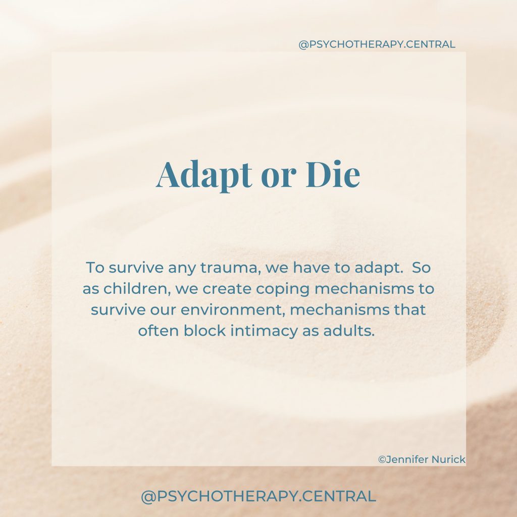 To survive any kind of trauma, we have to adapt. Adapt or die. So as children, we create coping mechanisms to survive our environment, mechanisms that often block intimacy as adults.