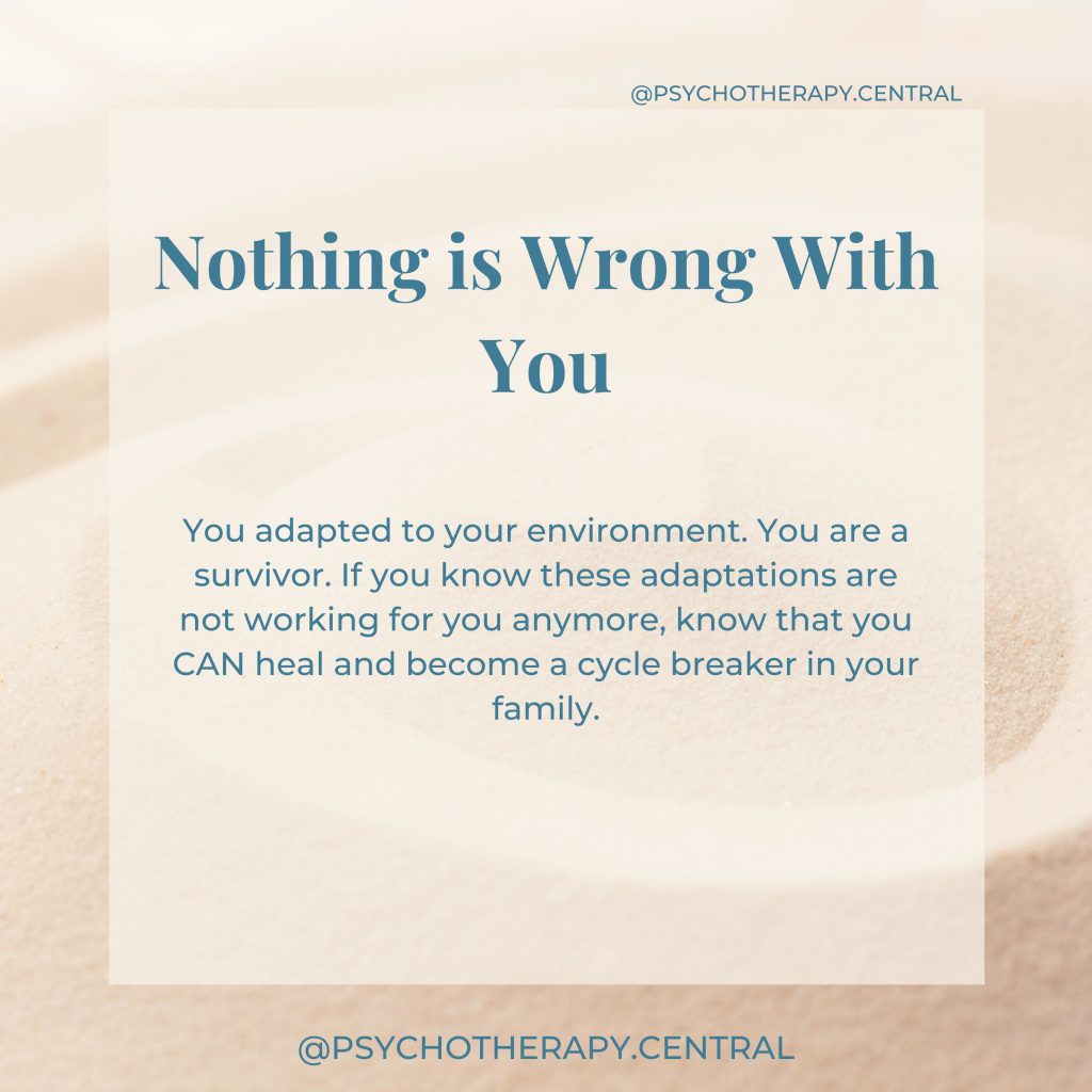 Nothing is wrong with you. You adapted to your environment, you are a survivor. If you know these adaptations are not working for you anymore, know that you CAN heal and become a cycle breaker in your family.