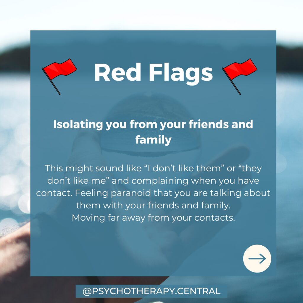 It can start very subtly. Little comments that they don’t like your family, making a fuss every time you see your friends and family until it just becomes too hard. You stop seeing them.