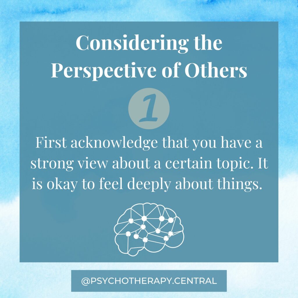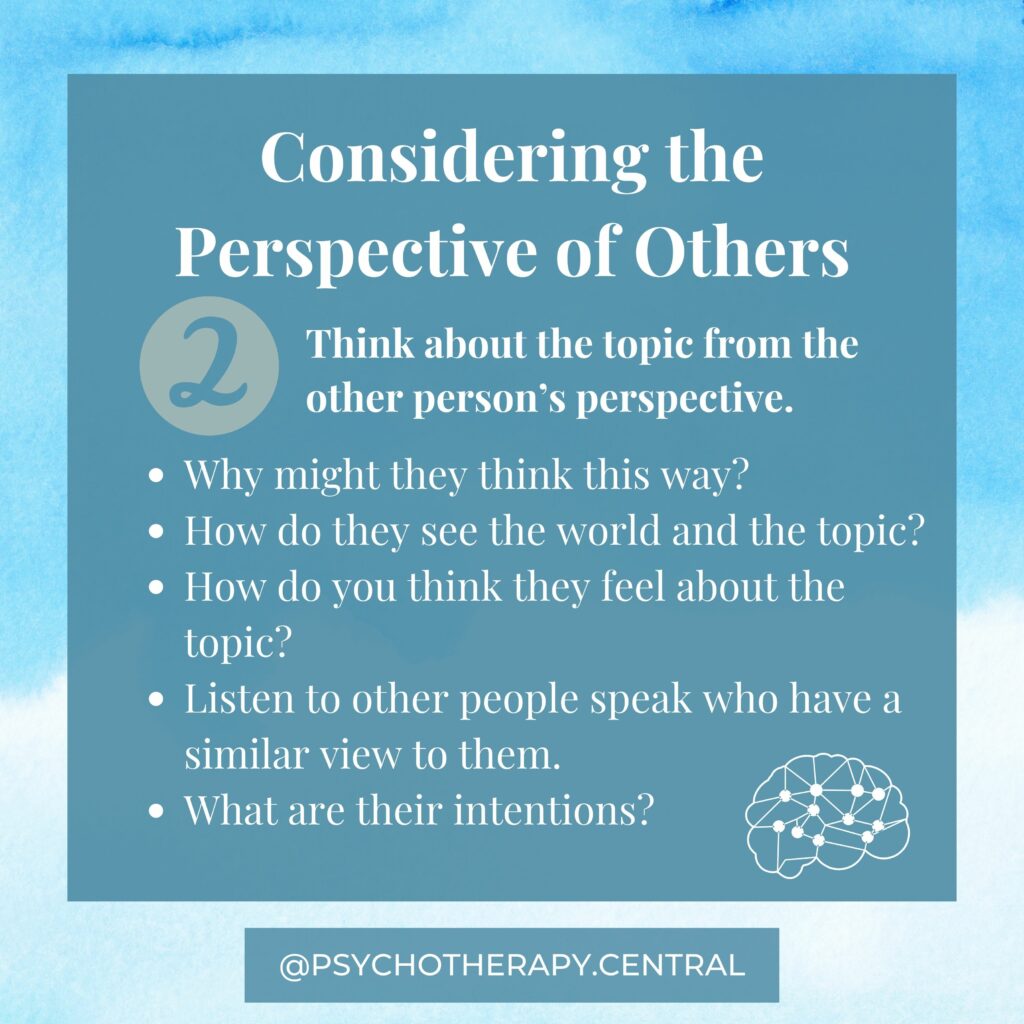 - Think about the topic from the other person’s perspective.