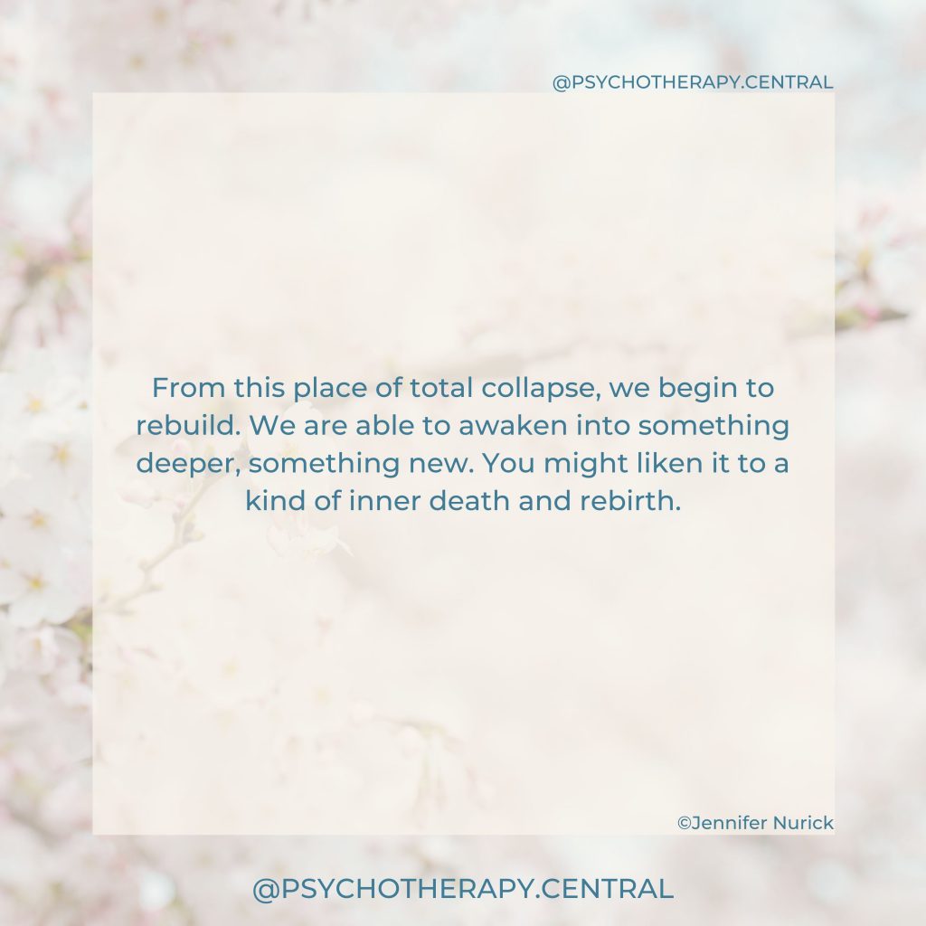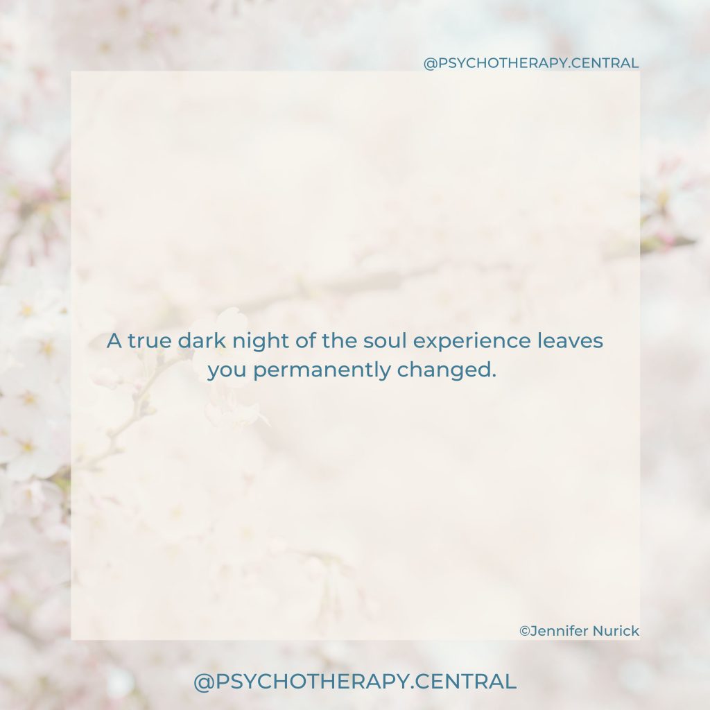 When I came out of it, there was a huge sense of relief. I wouldn’t say I had it all figured out, but i do know that experience led me to my vocation, to be a therapist. To hold space for other people going through their own challenges and dark nights, to walk with them through it, with compassion and love.