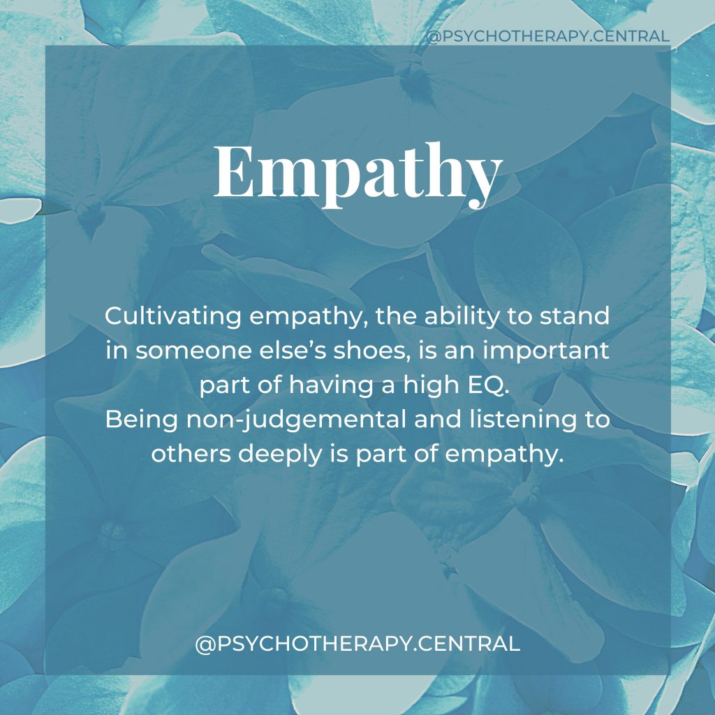 Empathy is also a vital component to EQ. Empathy is the ability to stand in someone else’s shoes and image how the world is for them. If you grew up in an environment where the adults around you were inconsistent and unsafe, it might have been destabilising to stand in their shoes and to allow yourself to feel what they feel. It might have been safer to shut down to other people’s experiences that were too overwhelming for a child to handle or process.