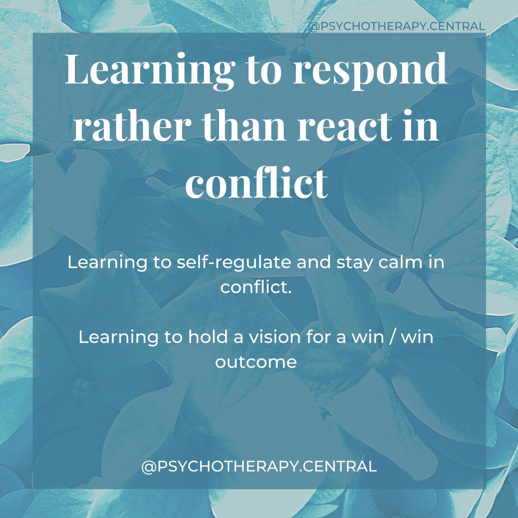 Self-regulation is something we learn in childhood. If we have attuned parents who come to us when we need soothing, their nervous system calms us down. As we grow up, we learn to do that for ourselves. If we have had an insecure attachment to the primary caregiver as a child, you may not have learned to self-soothe and self-regulate effectively. It IS possible to learn these skills as adults either alone, or with a therapist.