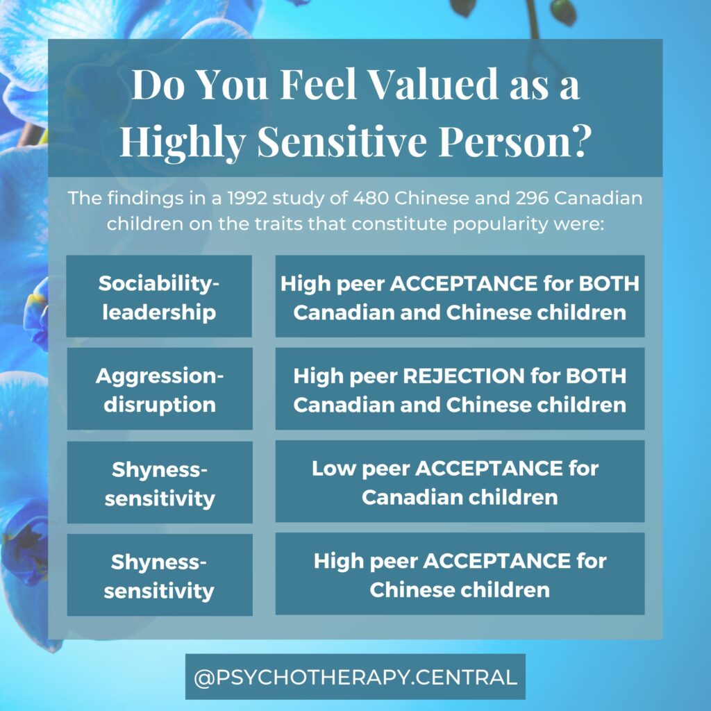The study highlighted traits that made children more popular in different cultures. It revealed that Chinese children naturally value shyness more than Canadian children. In fact, the ‘sensitive’ children in the Chinese sample were chosen above the other children for friendships.