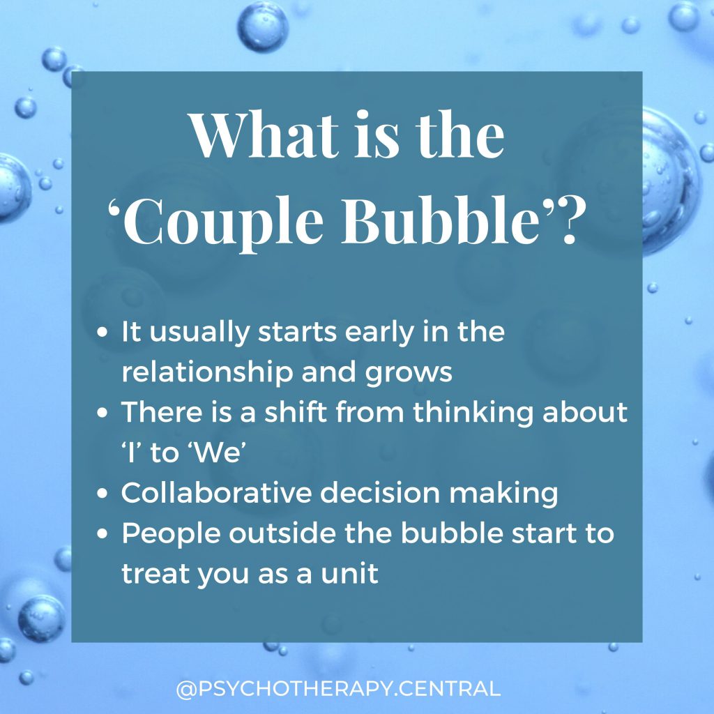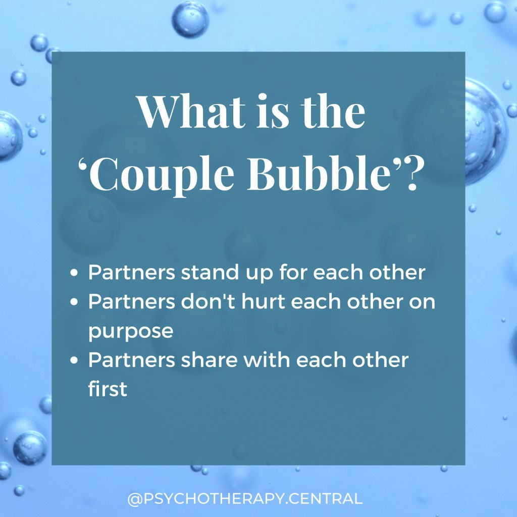When there is a couple bubble in place, there is a sense of exhaling, knowing that your partner is looking out for you and has your back.