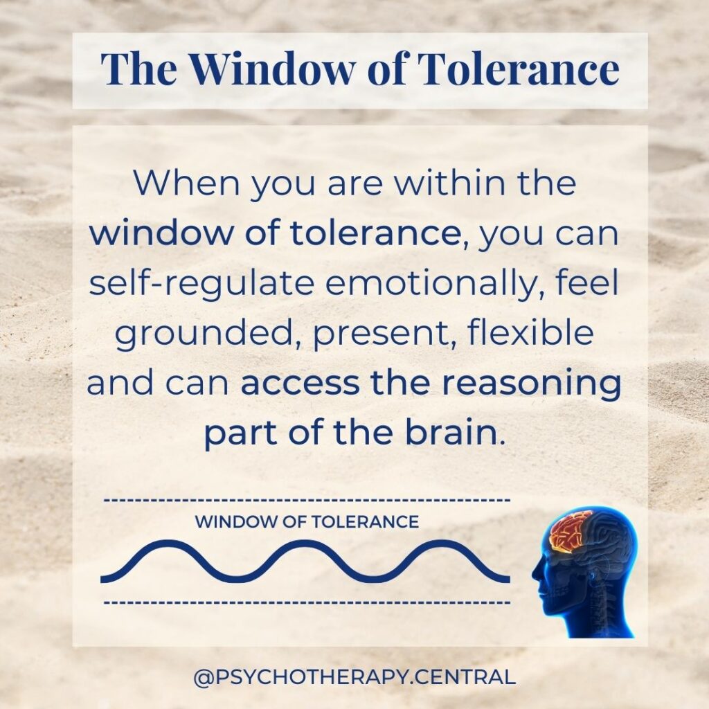 Inside this window, you can regulate your emotions smoothly, stay centered, and engage with life adaptively, accessing your brain’s logical reasoning.