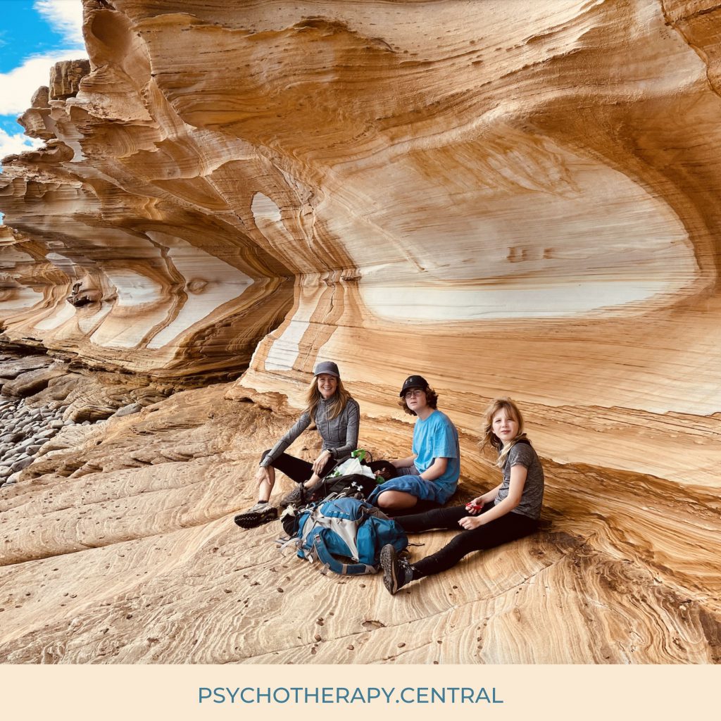 This is one of the reasons why my hubby and I consciously create family challenges. Things for us to go through together that are HARD and a bit scary. In this picture, we are on Maria Island in Tasmania, March 2020. We had to shimmy along a rock face in strong wind and the ocean lapping at our feet to get to this spot. We had to hold on to the overhanging rock above our head to be stable as we went.