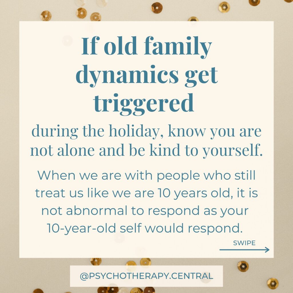 When we are with people who still treat us like we are ten years old, it is not abnormal to respond as your ten-year-old self would respond. If you find this happening to yourself, try to be gentle.