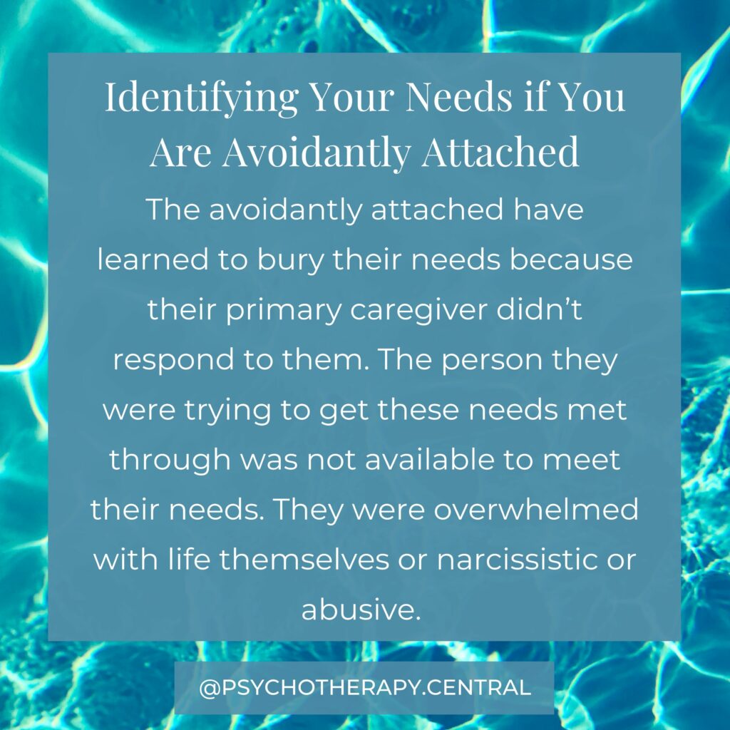 The avoidantly attached have learned to bury their needs because their primary caregiver didn’t respond to them. The person they were trying to get these needs met through was not available to meet their needs. They were overwhelmed with life themselves or narcissistic or abusive.