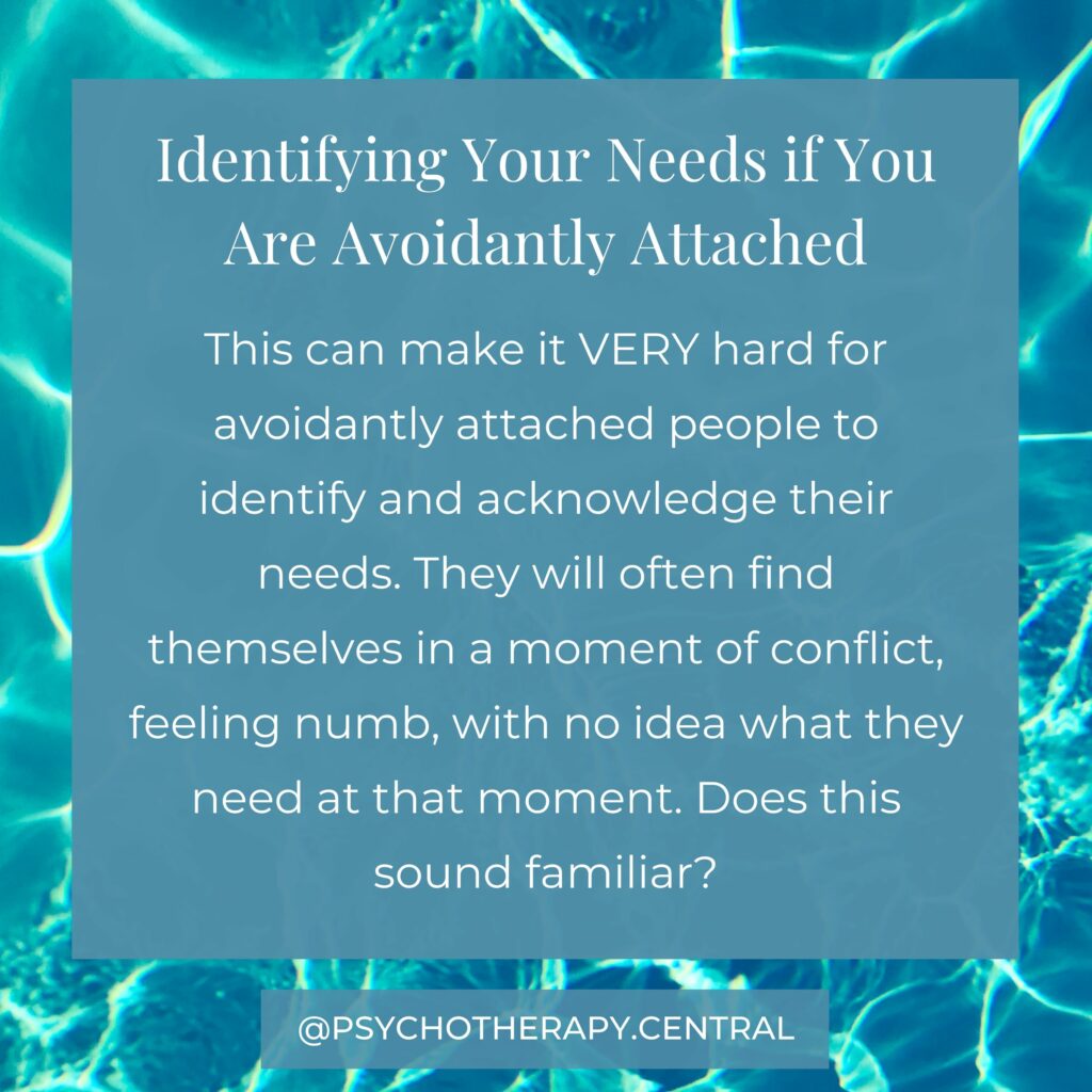 This can make it VERY hard for avoidantly attached people to identify and acknowledge their needs. They will often find themselves in a moment of conflict, feeling numb, with no idea what they need at that moment. Does this sound familiar?