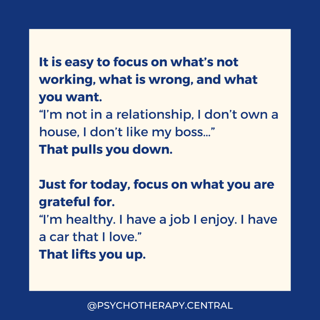 Most of us focus on the negative, what’s not working. We walk around feeling this lack within us most of the time. It can become a habit of thinking.