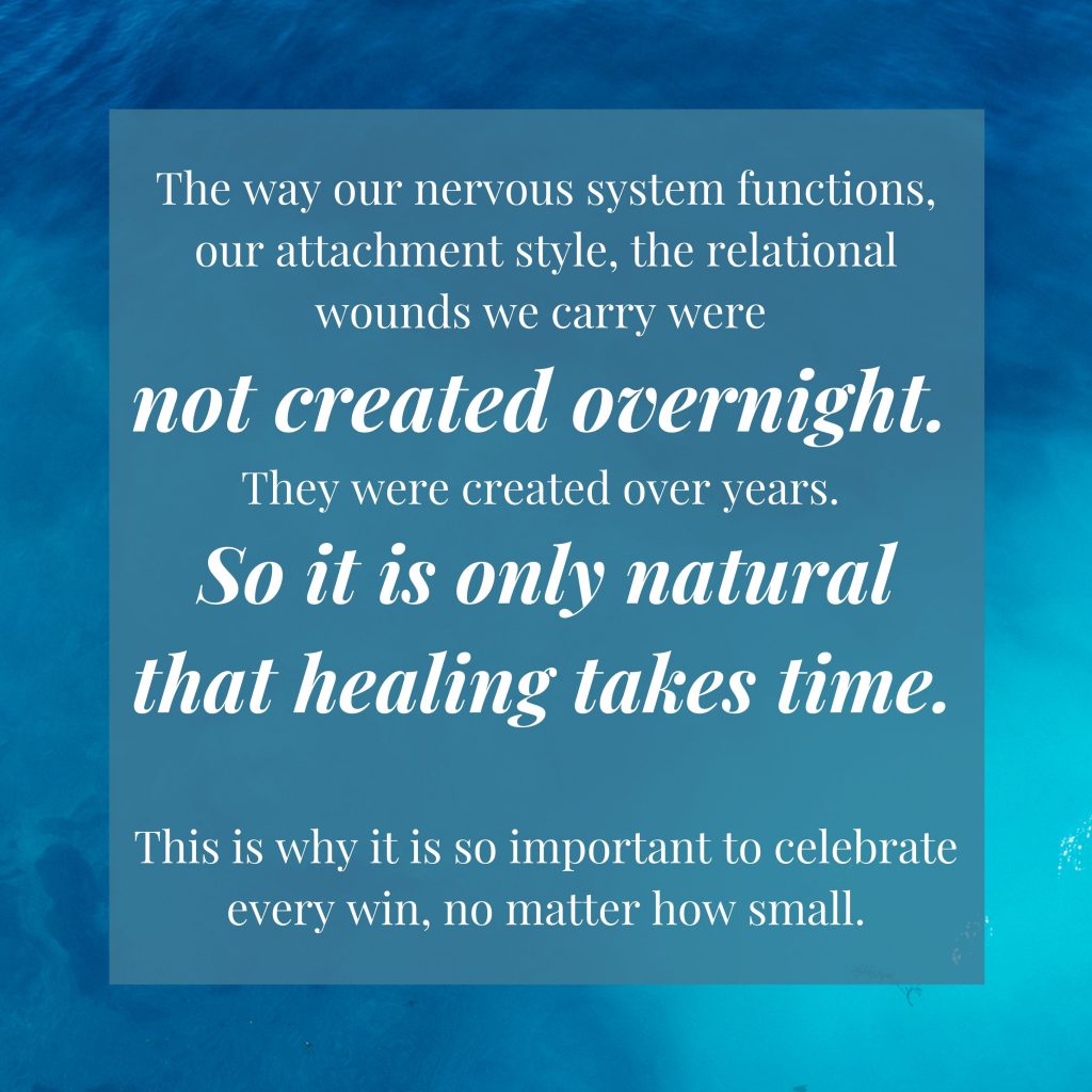 Give yourself the time you need and deserve. Have compassion for where you are right now. Try not to compare your journey to someone else’s. You are completely different people with completely different wounds to tend. You are exactly where you need to be. You are enough.