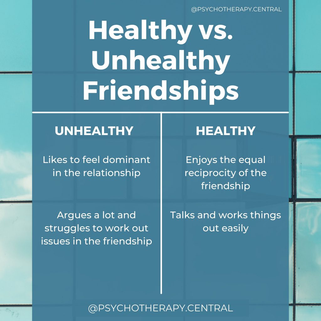 At the core, a healthy friendship has reciprocity, and both people feel nurtured and cared for. There is a sense of BOTH being worthy of the friendship and receiving energy, validation and warm connection.