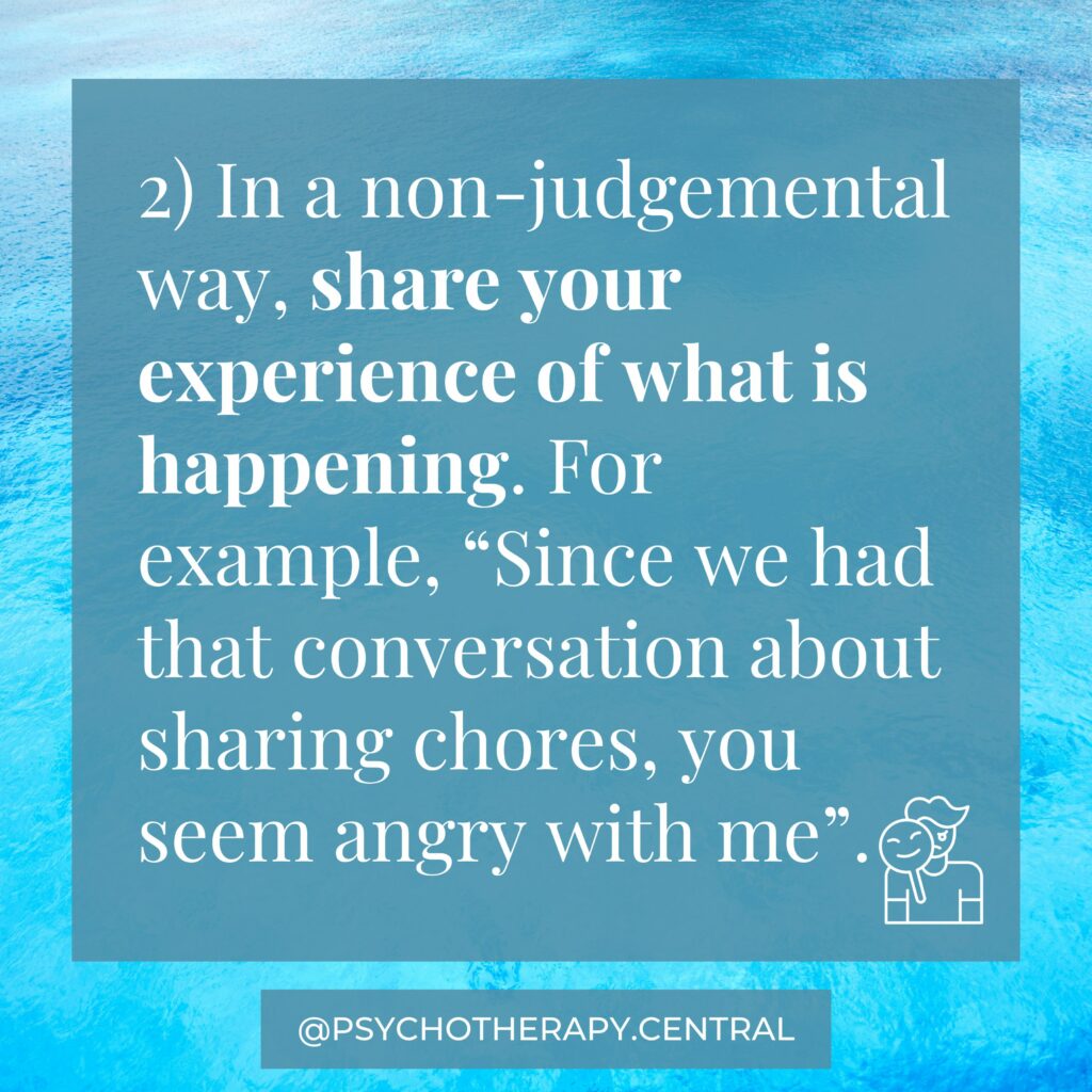 One of the most effective ways to work with passive-aggressive people is to call them out on the behaviour. In a non-judgmental way, share your experience of what is happening. For example, “Since we had that conversation about sharing chores, you seem angry with me.”