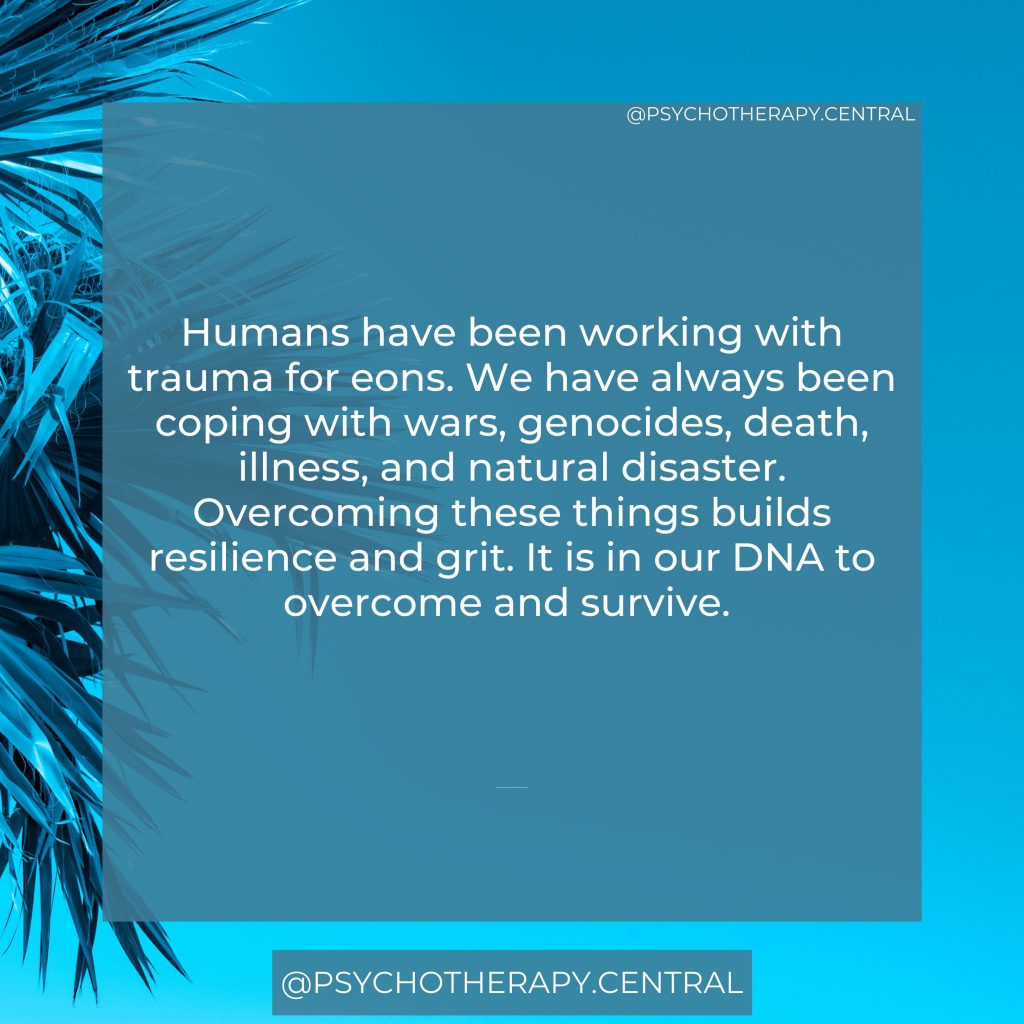 Humans have been working with trauma for eons. We have always been coping with wars, genocides, death, illness, and natural disaster. Overcoming these things builds resilience and grit. It is in our DNA to overcome and survive.