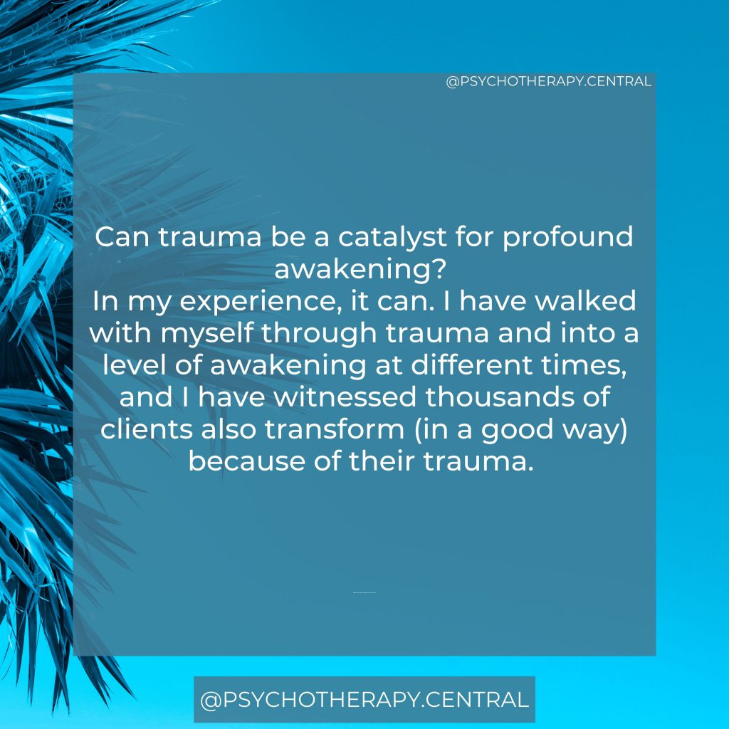 Can trauma be a catalyst for profound awakening? In my experience, it can. I have walked with myself through trauma and into a level of awakening at different times, and I have witnessed thousands of clients also transform (in a good way) because of their trauma.