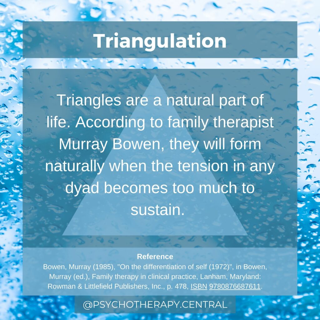 Some triangles are healthy and helpful, for example, when work colleagues struggling with a piece of work approach their boss for some help, or when two quarreling siblings go to their parent to keep the peace and prevent a fight.