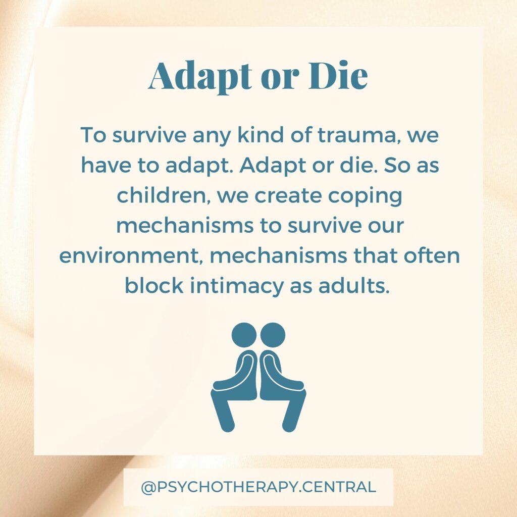 To survive any kind of trauma, we have to adapt. Adapt or die. So as children, we create coping mechanisms to survive our environment, mechanisms that often block intimacy as adults.