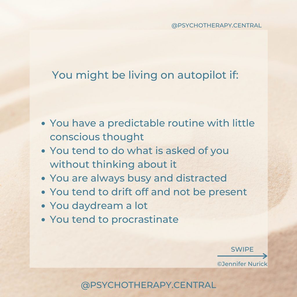 When we are living on autopilot, much of our life force is simply not being used. As we ‘wake up’, more energy becomes available. It is like moving from being in a black and white movie to a full technicolour one. Suddenly, we are more aware of the colours, sounds and smells. We are more fully engaged in our relationships and purposeful about changes we would like to make.