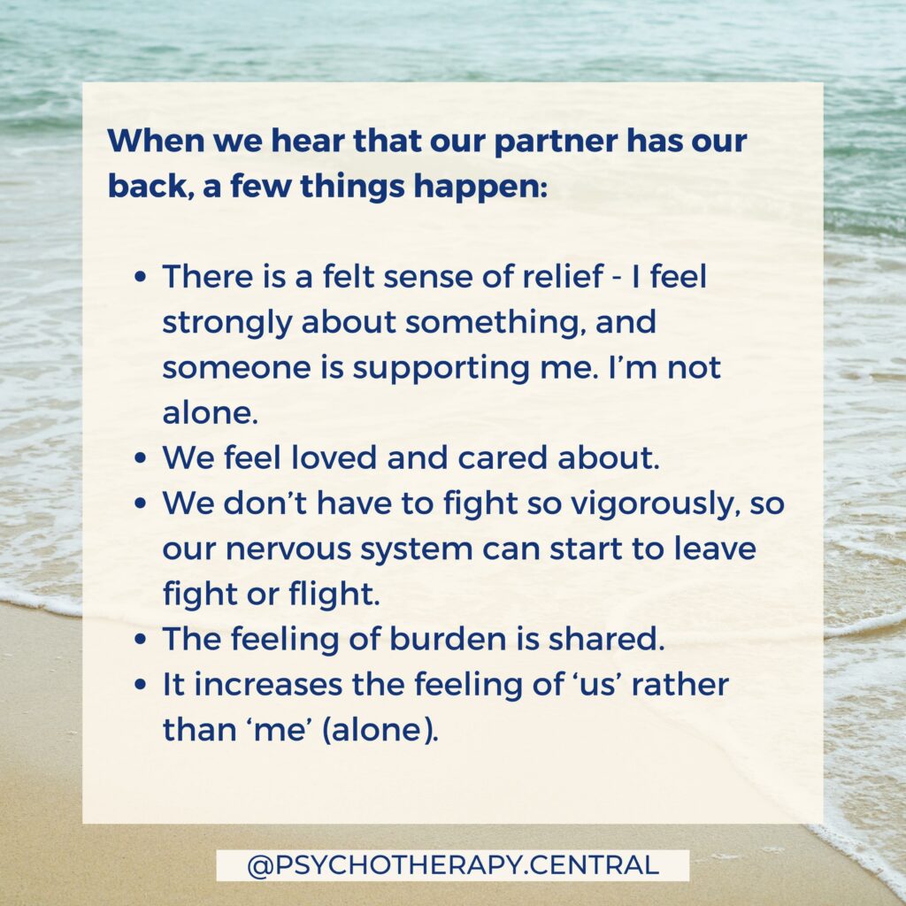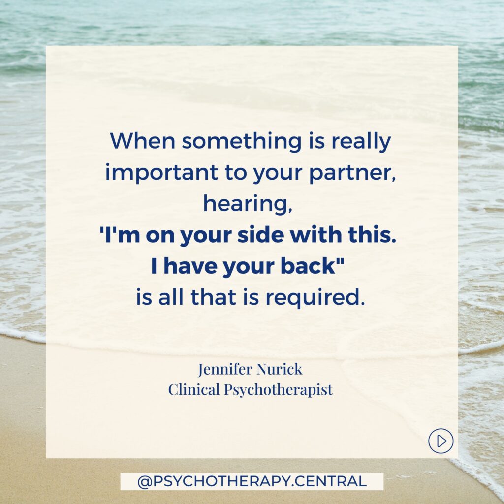 When something is really important to your partner, hearing, 'I'm on your side with this. I have your back" is all that is required.
