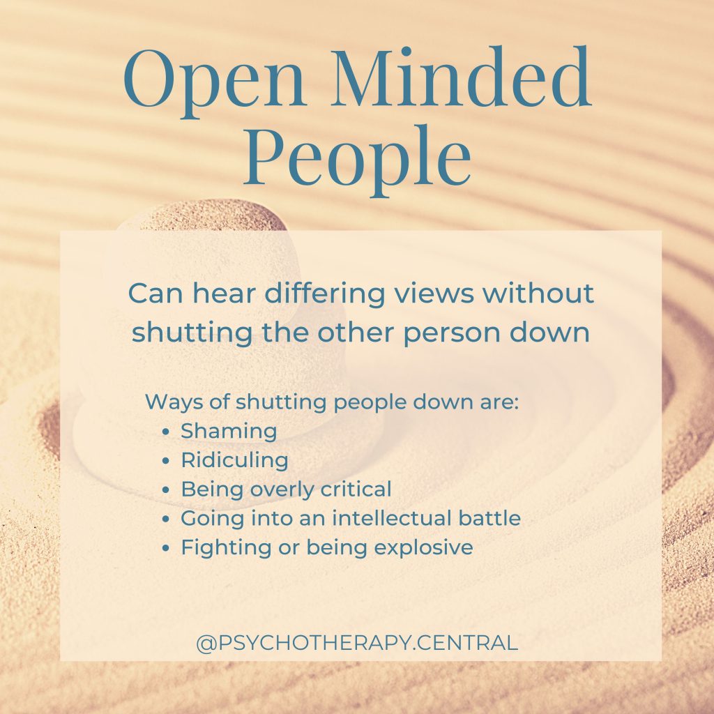 Being open minded can be tricky. Especially if we have grown up having to defend our world view and opinions within our family of origin. Most of us have inherited our world views from our family, religion and culture, and will go through a natural process of questioning those views.