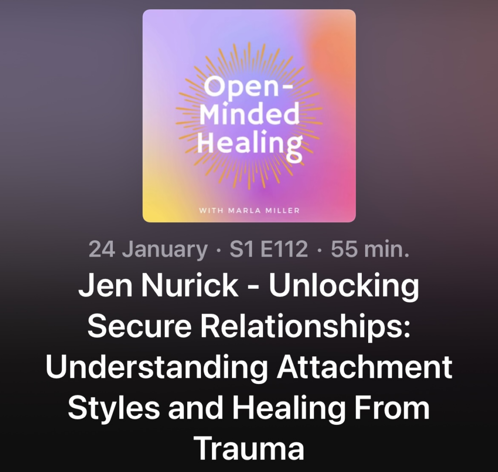 I had such a wonderful chat with Marla. We covered all things attachment and touched on trauma, EMDR, IFS, meditation and healing. Head over to her podcast and check it out. If you like what you hear, please leave a review.