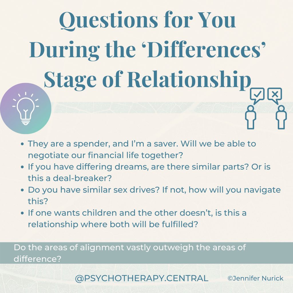 This is the phase where we step back from the intense merging of the honeymoon phase, we take off the rose-tinted glasses and ask ourselves if we can live with the reality of the other person. It is easy to build a dream-like version of the other person only partially based on reality in the honeymoon stage.