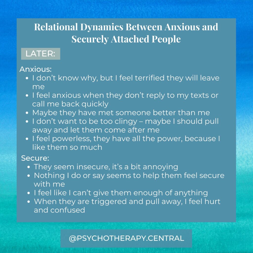 Being in a relationship with an anxiously attached person can feel suffocating. Small things might trigger them. Like not returning a call until after work, which is interpreted as not being committed.