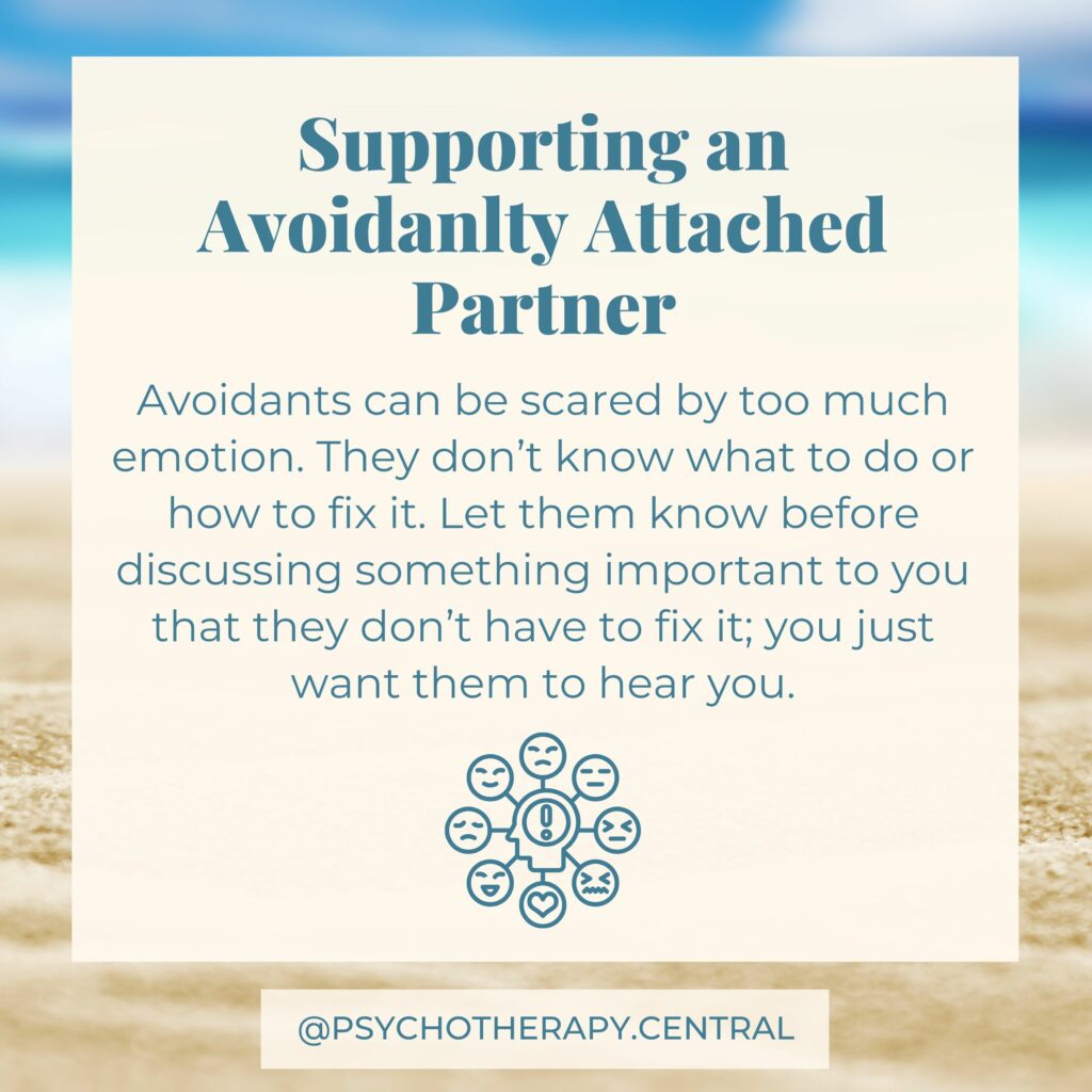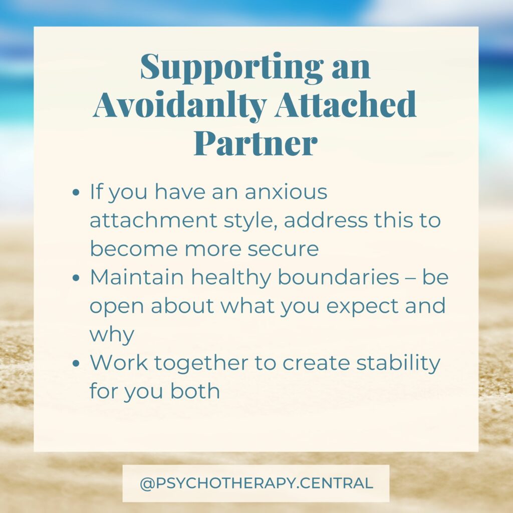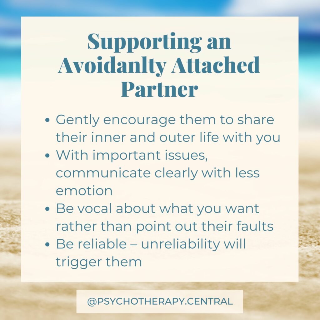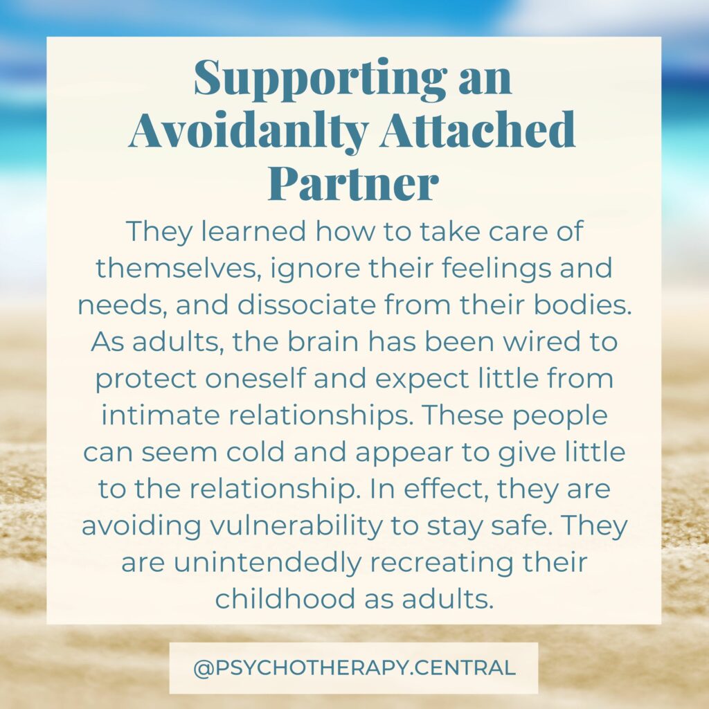 Avoidantly attached people often have a well-developed ‘inner adult’. They are stable, secure and seem to have it all worked out. This can be very attractive for people who have a well developed ‘inner child’. They feel safe with this adult in their life; they can play while the other person takes on the serious role while the avoidant is highly attracted to the playfulness in the other person they struggle to access in themselves. Sounds familiar?