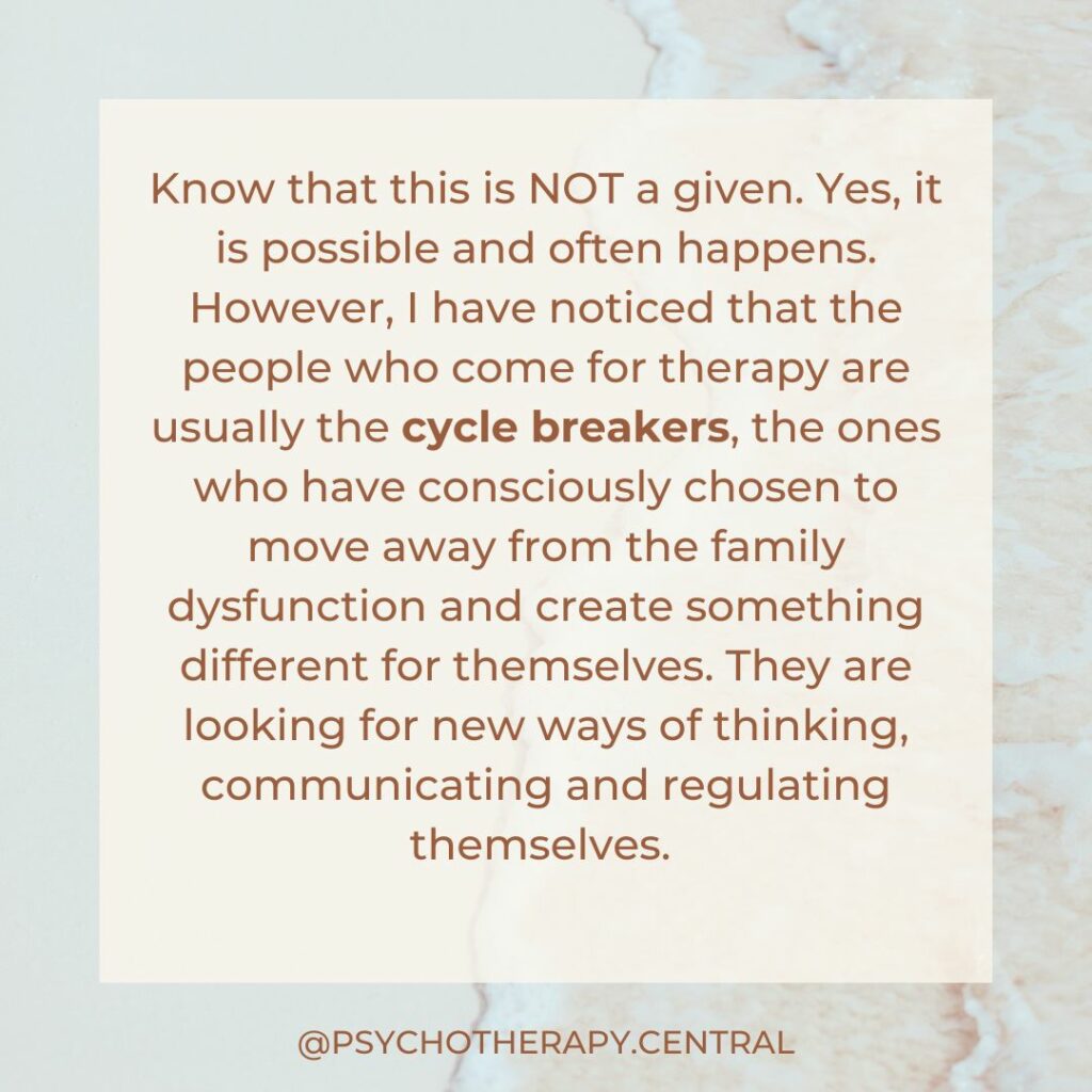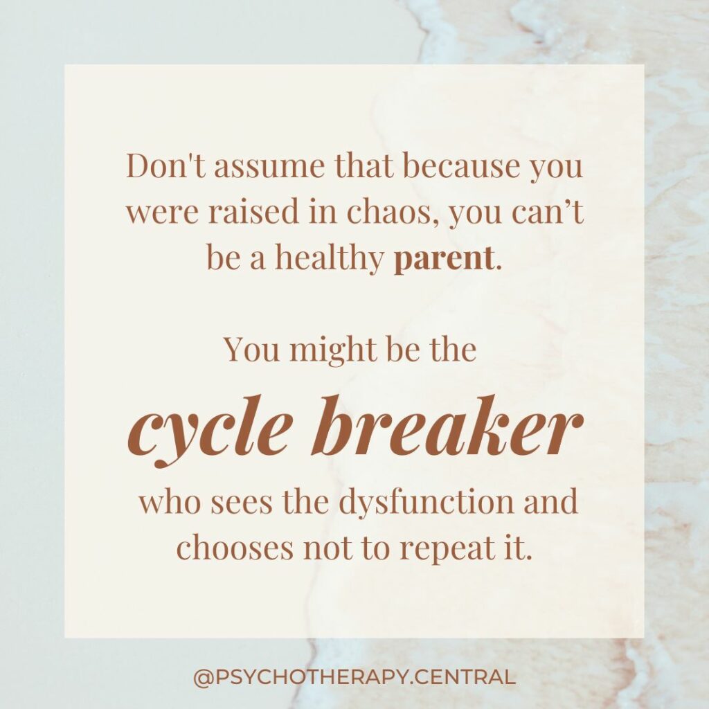 Don't assume that because you were raised in chaos, you can’t be a healthy parent. You might be the cycle breaker who sees the dysfunction and chooses not to repeat it.