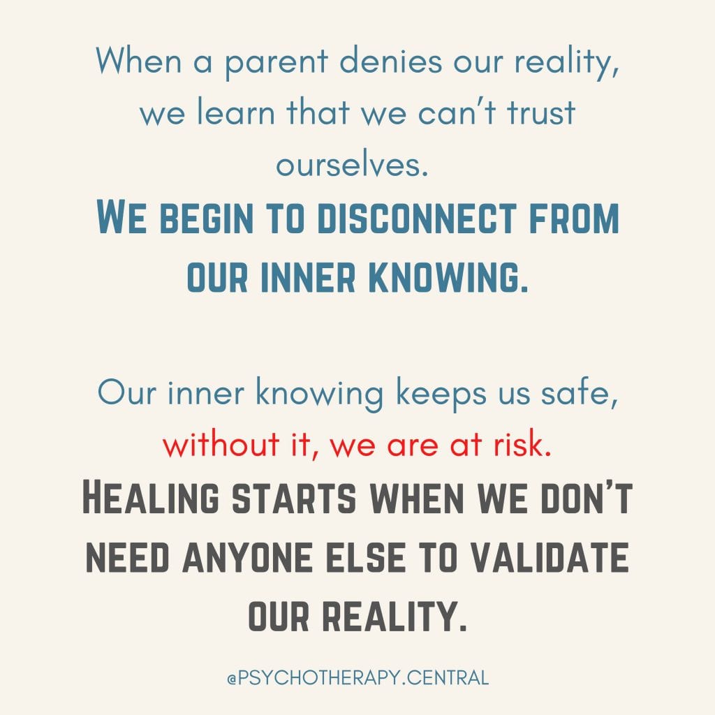 When our version of reality is denied, we start to doubt our experiences in the physical world, and eventually start to doubt our experiences in the inner world. We begin to disconnect from our inner knowing, our intuition, because everyone around me says that is not true, so I must be wrong.