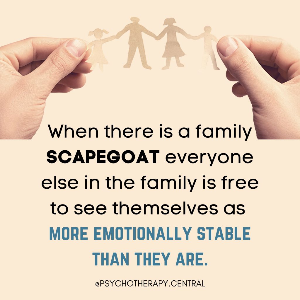 No other member of the family is as ‘bad’ or ‘naughty’ as the scapegoat, which creates a kind of comfort for everyone else. As one of the other siblings, you might make a mistake, but it is not as bad as the scapegoat, so will be essentially overlooked.