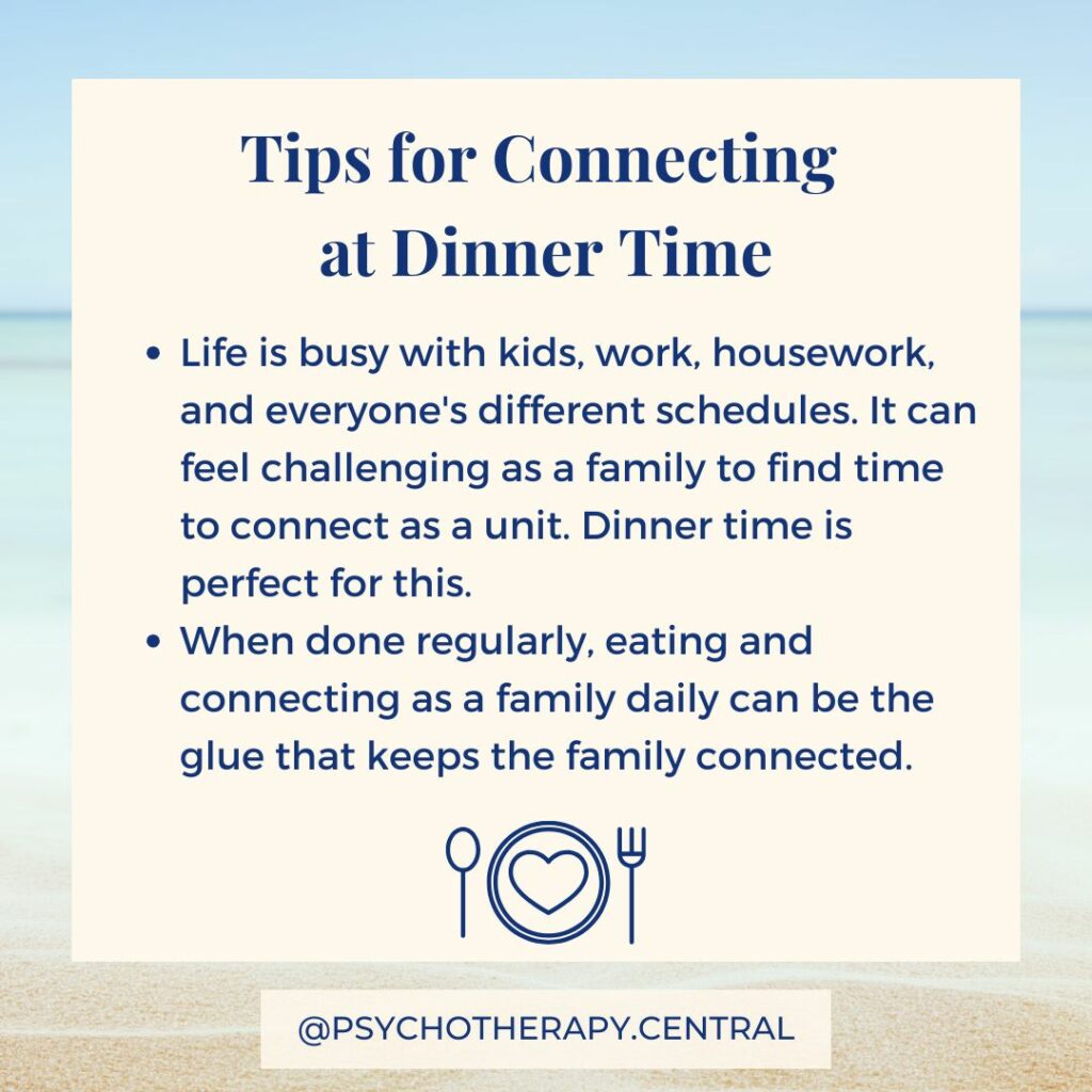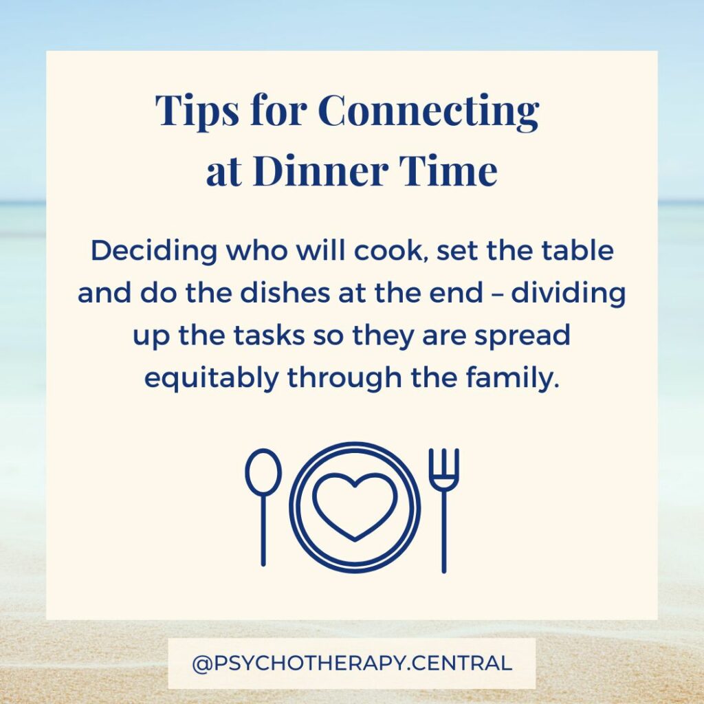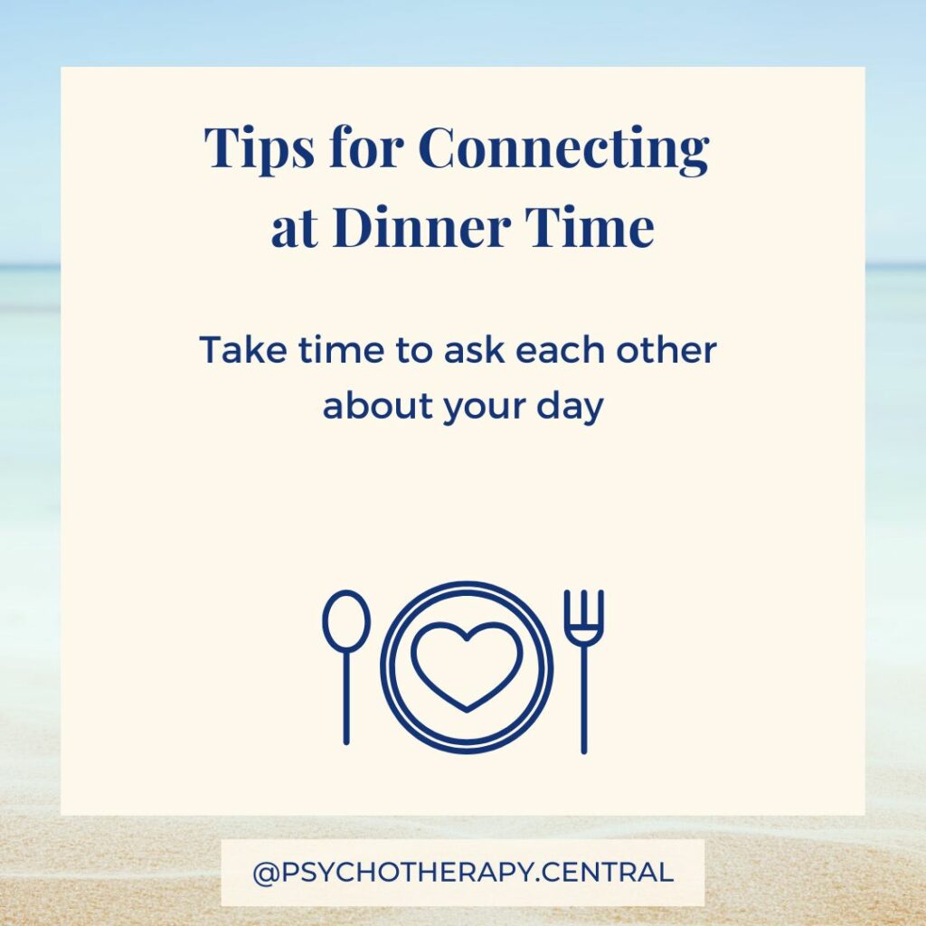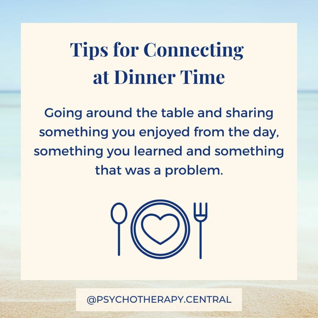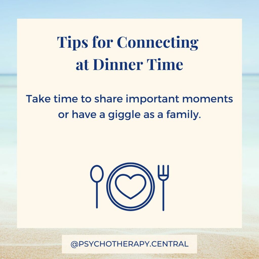 You might like to think about conversations promoting connection around the table. For example, what was the best part of your day today? What was the worst part? What did you learn today? What are you grateful for today?