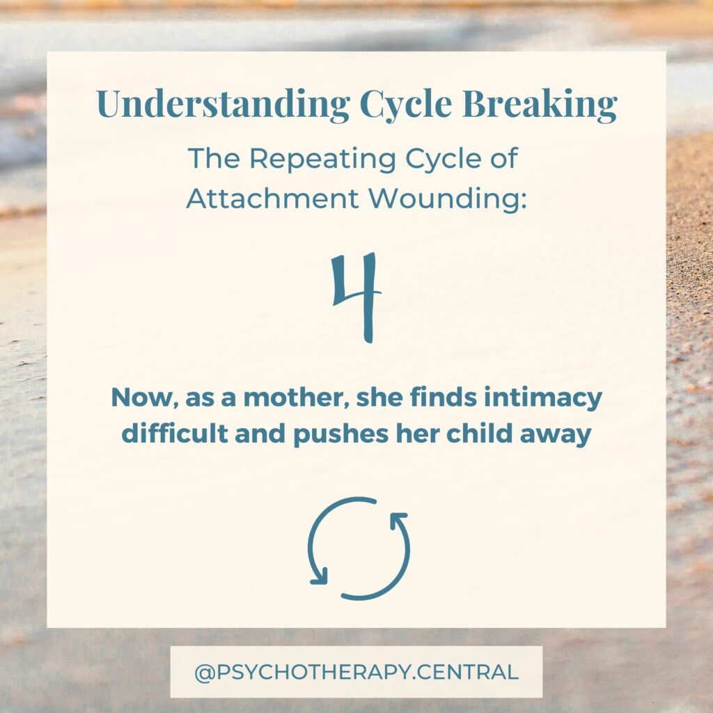 Relational cycles in families can be the most challenging cycles to break because you come up against what might feel like ‘the establishment’ when trying to break them. With the example above, the rebellion is to heal your attachment wound and be a more attuned, loving mother than your mother was able to be for you.