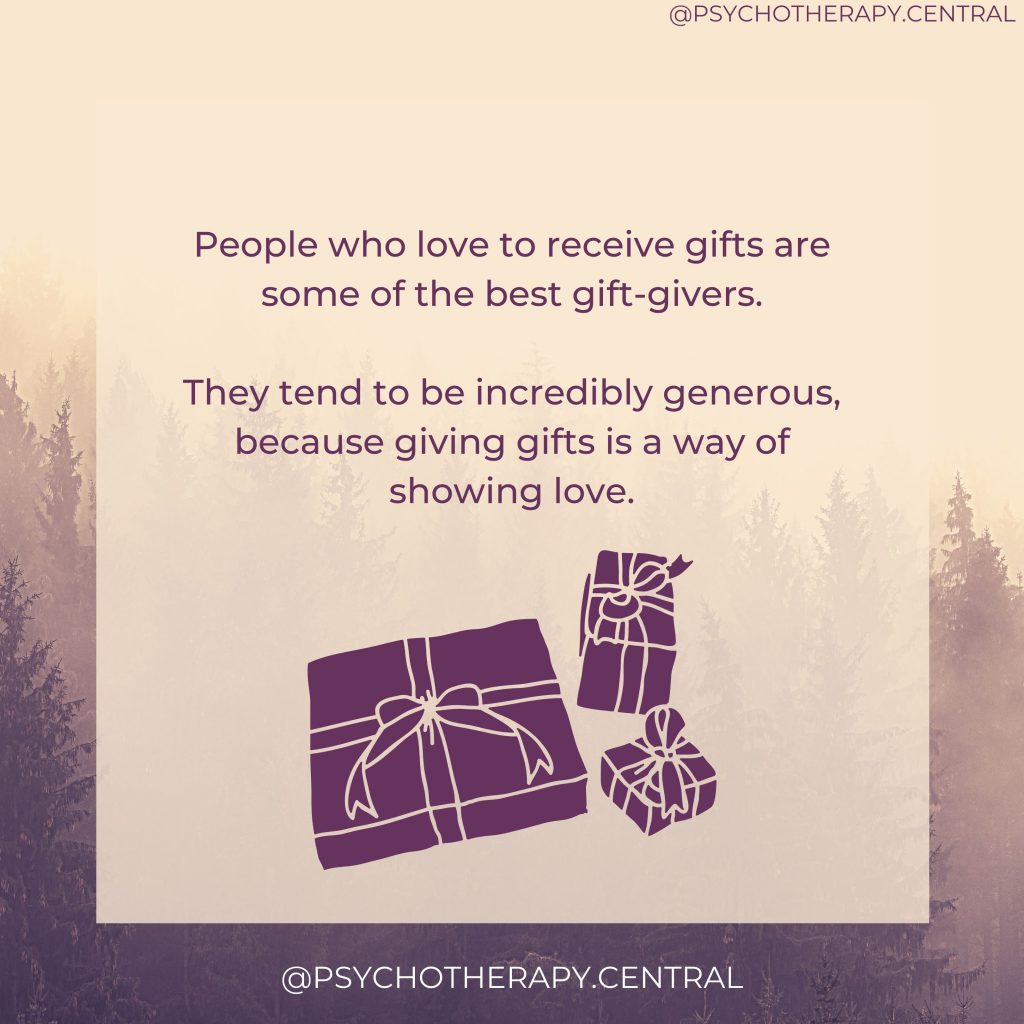 People who love to receive gifts are some of the best gift-givers. They tend to be incredibly generous, because giving gifts is a way of showing love.