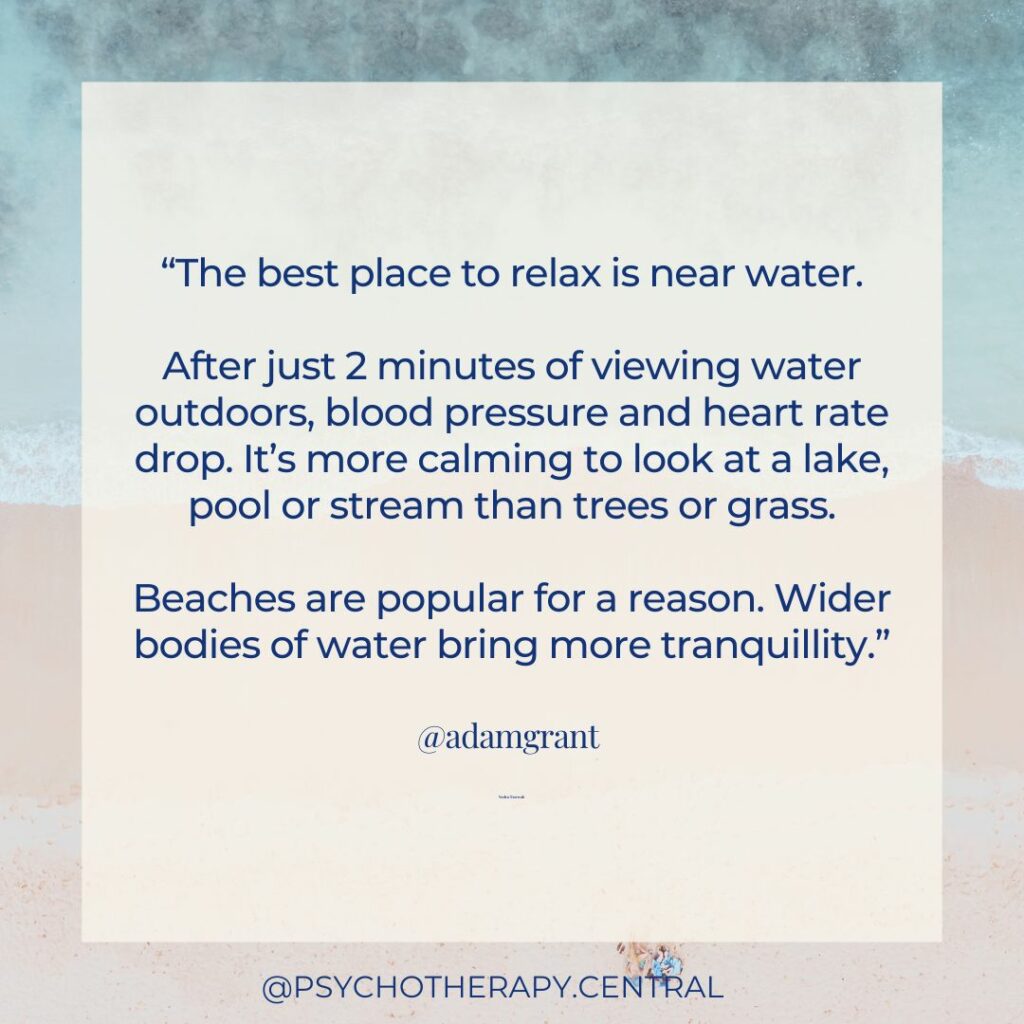 Beaches are popular for a reason. Wider bodies of water bring more tranquillity.” Adam Grant