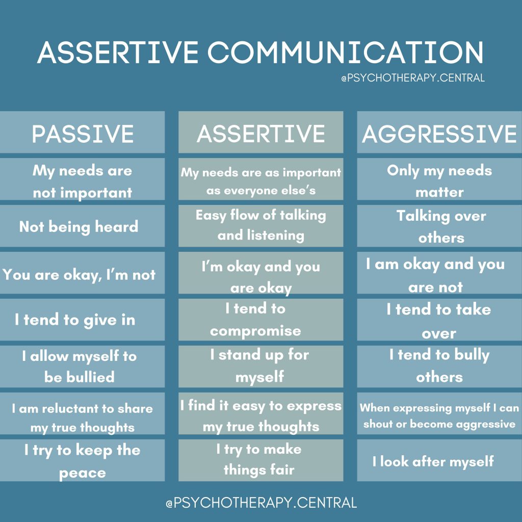 If you had aggressive or passive parents, there is a strong chance that your communication style will be either passive or aggressive and discovering what assertive communication sounds and feels like is a journey.