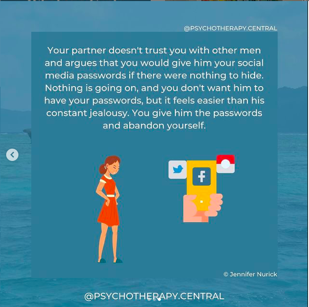 It is okay to revisit a decision and change your mind. With the passwords, you might go back and say, “I have had some time to think about my decision to give you my passwords, and I am not comfortable with it. I understand you feel jealous; maybe we should talk to someone and get some help with this issue?”